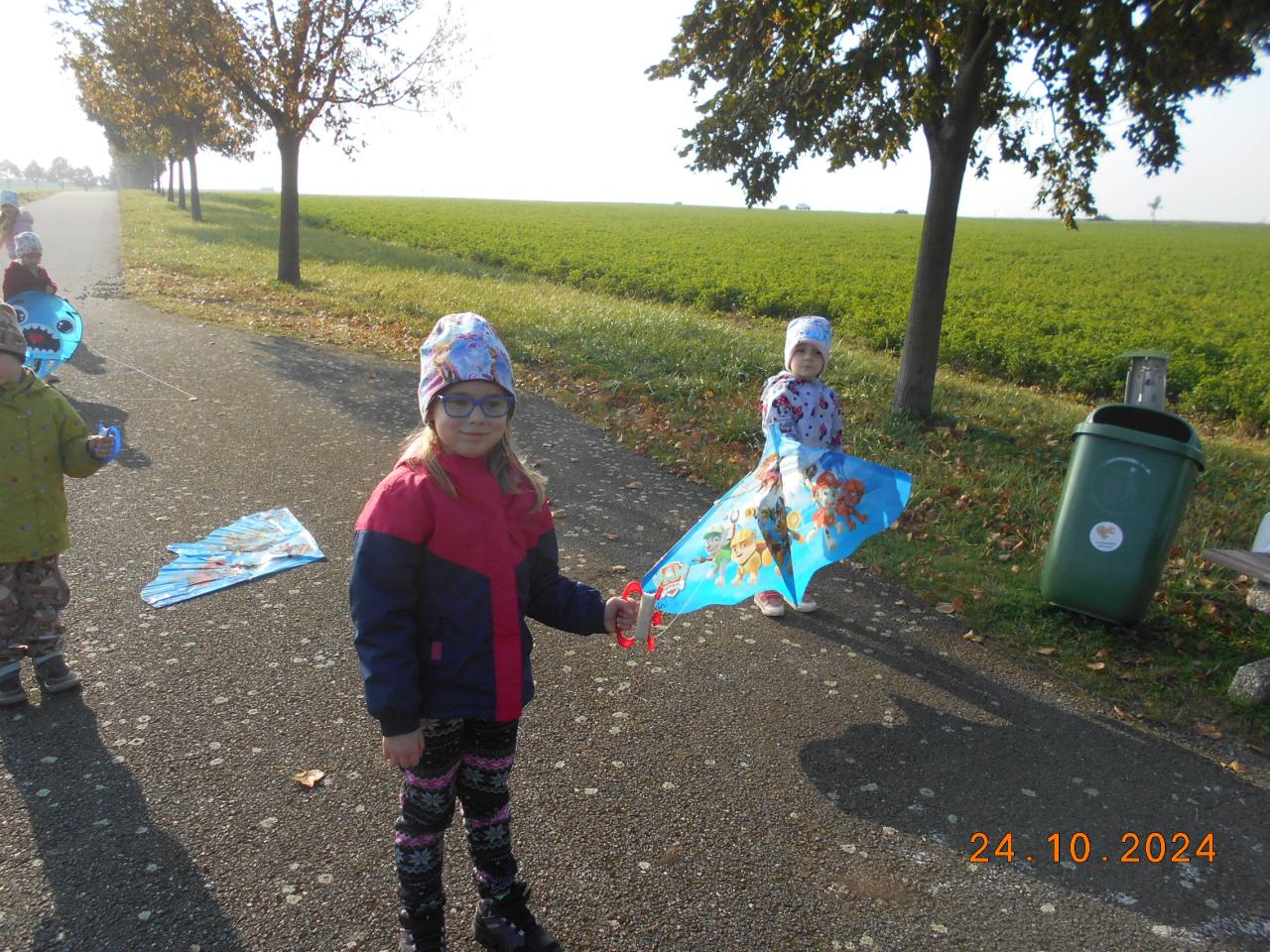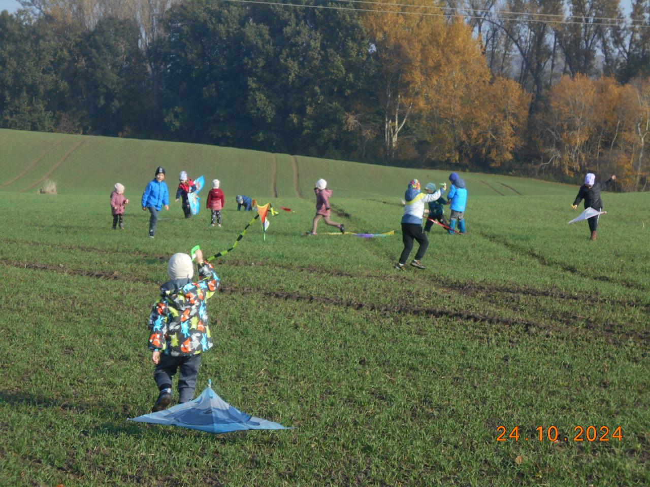 Tak jako každý rokem děti rády chodí pouštět draky, tak tomu bylo i v letošním školním roce. Ve školce jsme tancovali a zpívali o dráčcích a dračicích a pak hurá za sluníčkem ven. Krásné podzimní počasí nám přálo a větřík také trochu pofukoval. Děti si přinesly různé draky – chobotnice, delfíny, princezny, pejsky a během chvíle se draci vznášeli na obloze. Naše malá drakiáda se nám vydařila a všichni byli moc spokojeni.