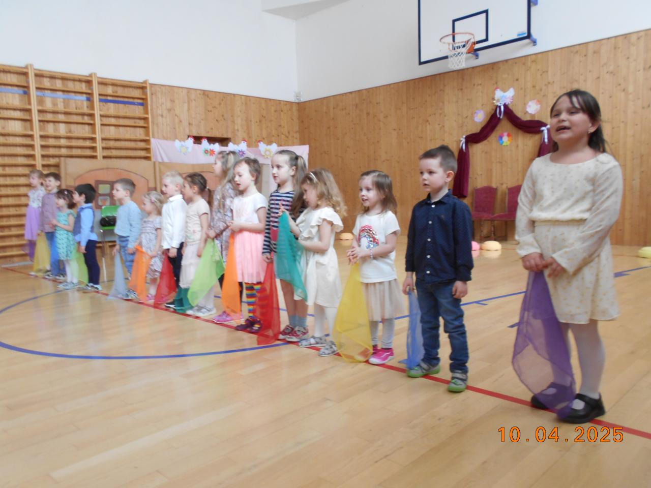 Stalo se již jarní tradicí, že děti z mateřské školy, tedy naši nejmenší kamarádi, vystupijí na jarním jarmarku před programem žáků základní školy. Nejinak tomu bylo i letos. A byli rozkošní. Všechny pobavili již při nástupu, kdy bezpostředně povolávali na své rodiče a babičky. Současně je vždy patrné, jak se i ti nejmenší za tu část školního roku "posunou" - zatímco při vánočním představení se tu a tam objeví slzičky, když uvidí rodiče a jdou za maminkou, na jarním vystoupení nejen před rodičí , ale i před spoustou lidí již je to ani nenapadne :-).