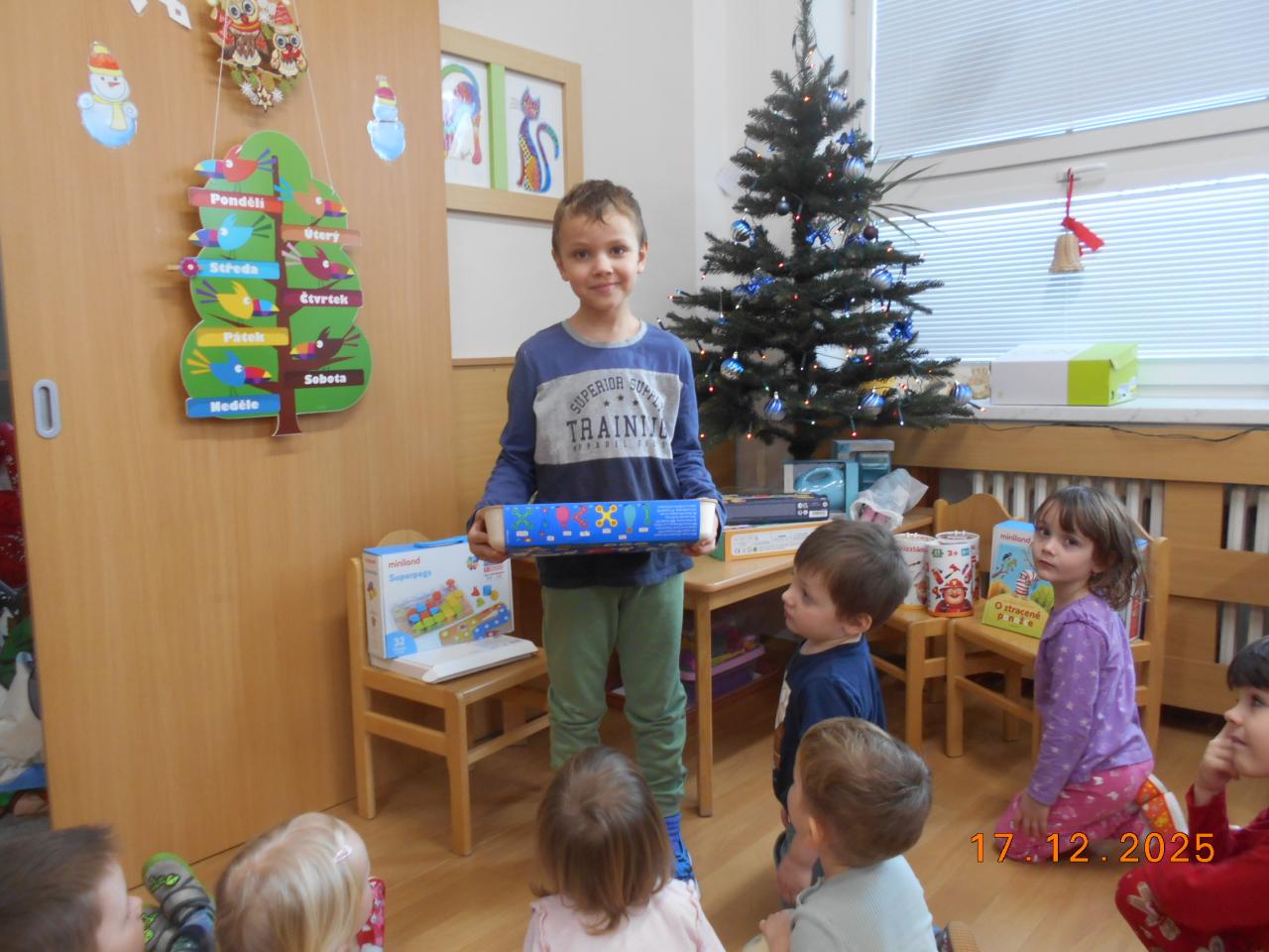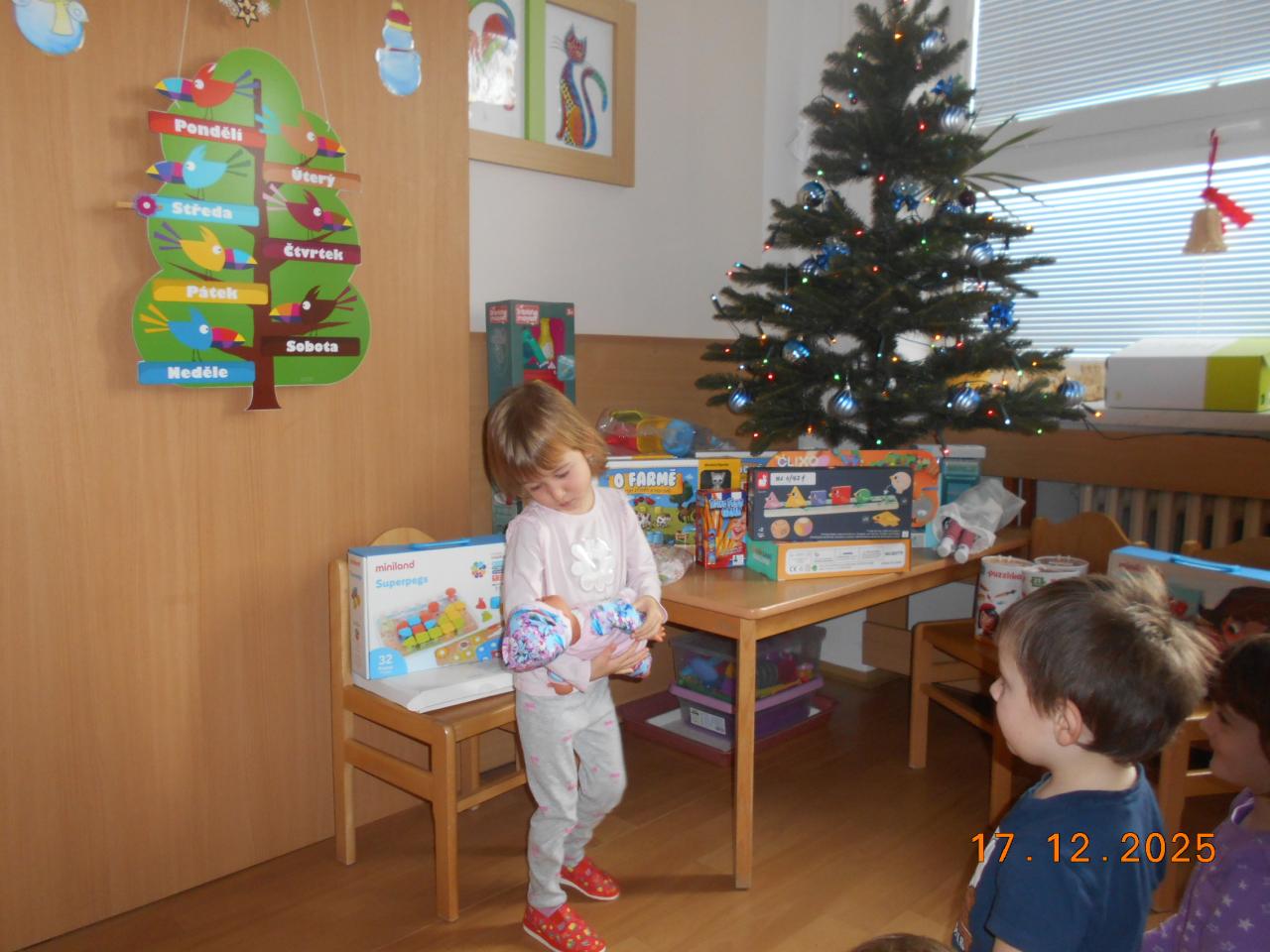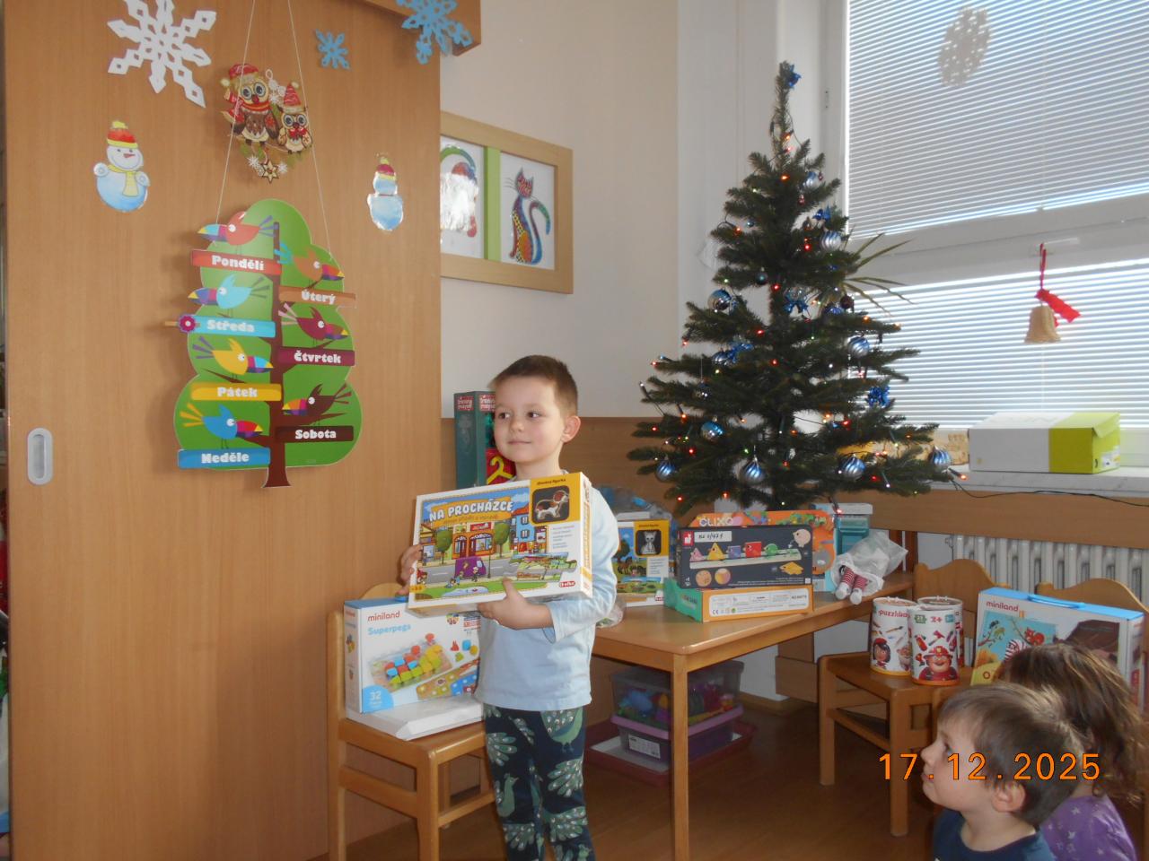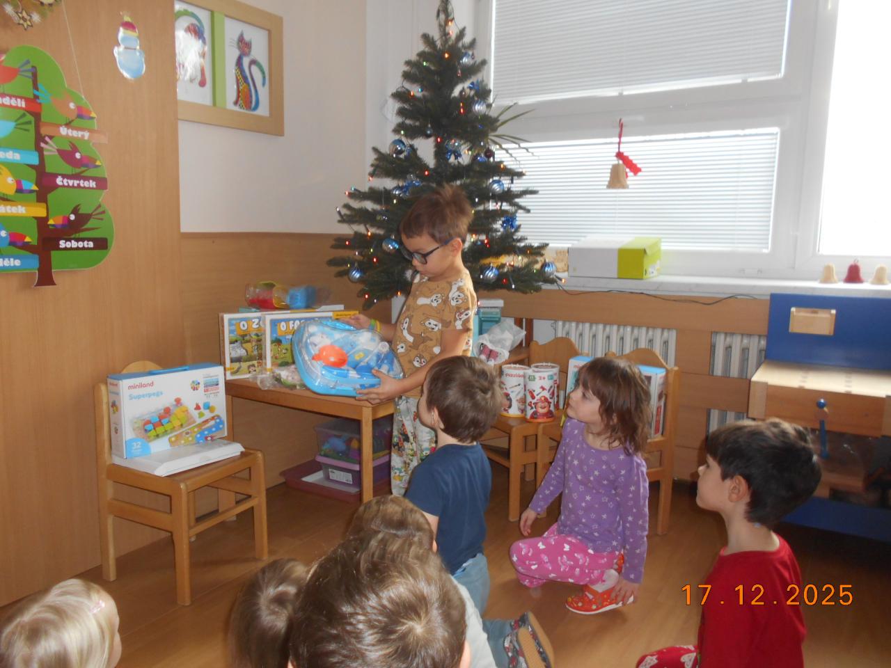 Bylo tiché prosincové ráno a ve školce to vonělo vánoční atmosférou. Ježíšek už tady byl, si potichu šeptaly děti. Pod stromečkem se choulily balíčky. Děti měly radost, zpívaly koledy a věděly, že Ježíšek přišel potichu, s láskou a jen na chvilku. Čekalo nás radostné rozbalování a radost v dětských očích.