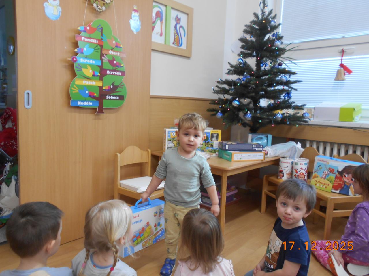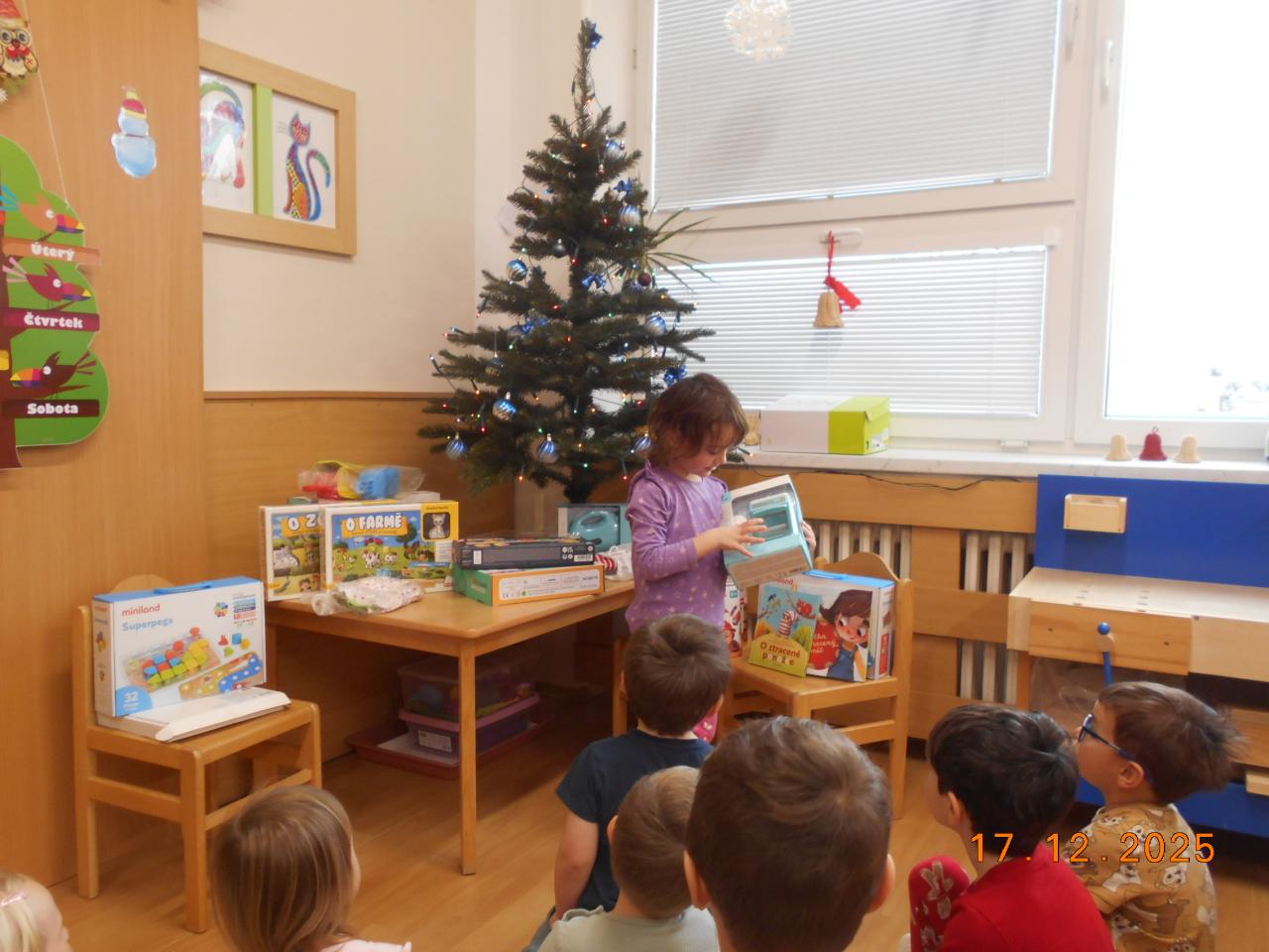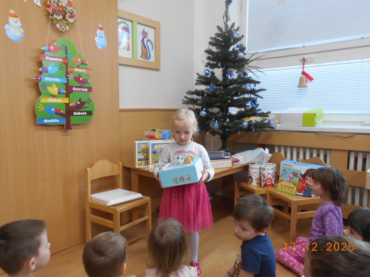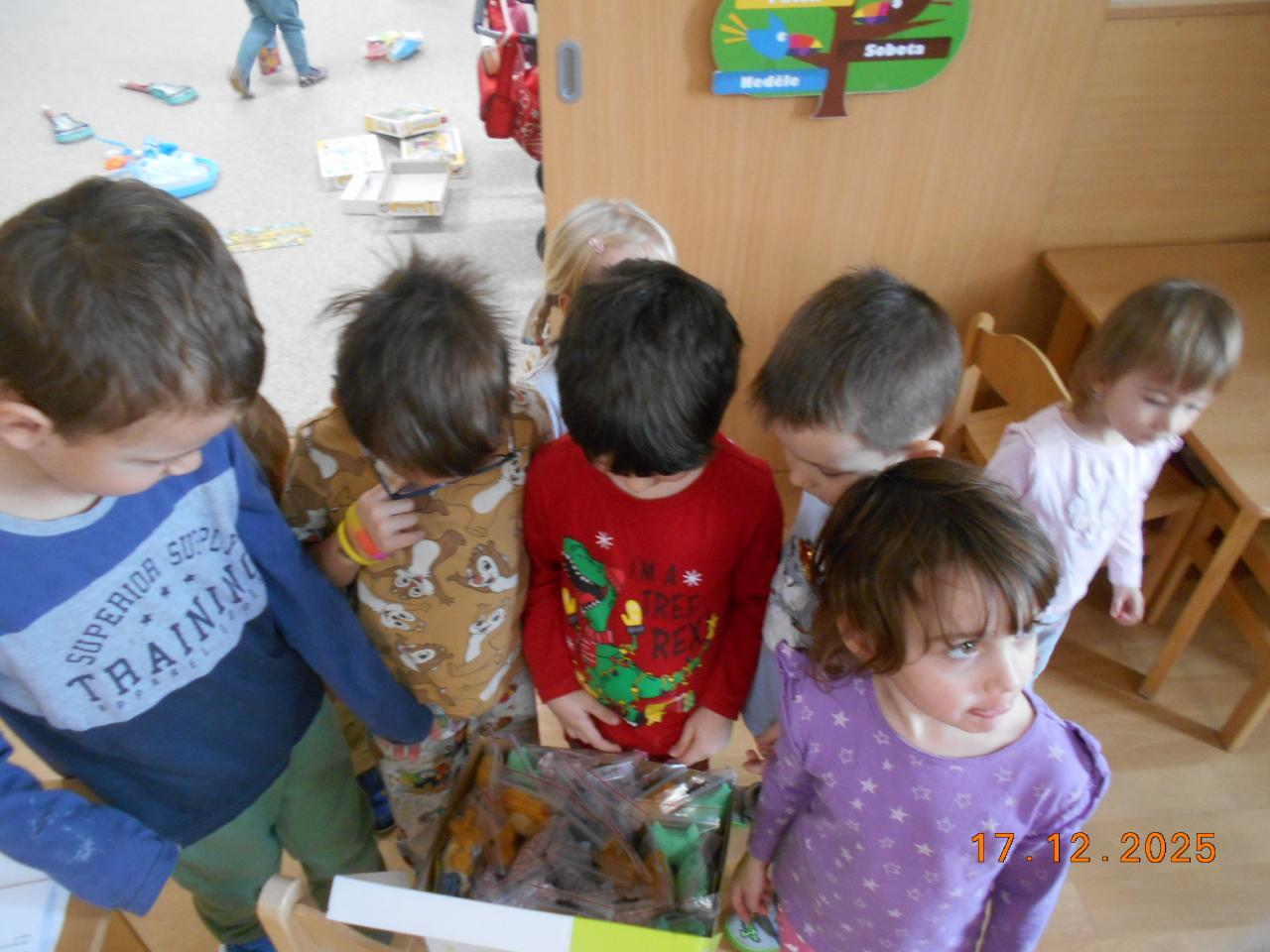 Bylo tiché prosincové ráno a ve školce to vonělo vánoční atmosférou. Ježíšek už tady byl, si potichu šeptaly děti. Pod stromečkem se choulily balíčky. Děti měly radost, zpívaly koledy a věděly, že Ježíšek přišel potichu, s láskou a jen na chvilku. Čekalo nás radostné rozbalování a radost v dětských očích.