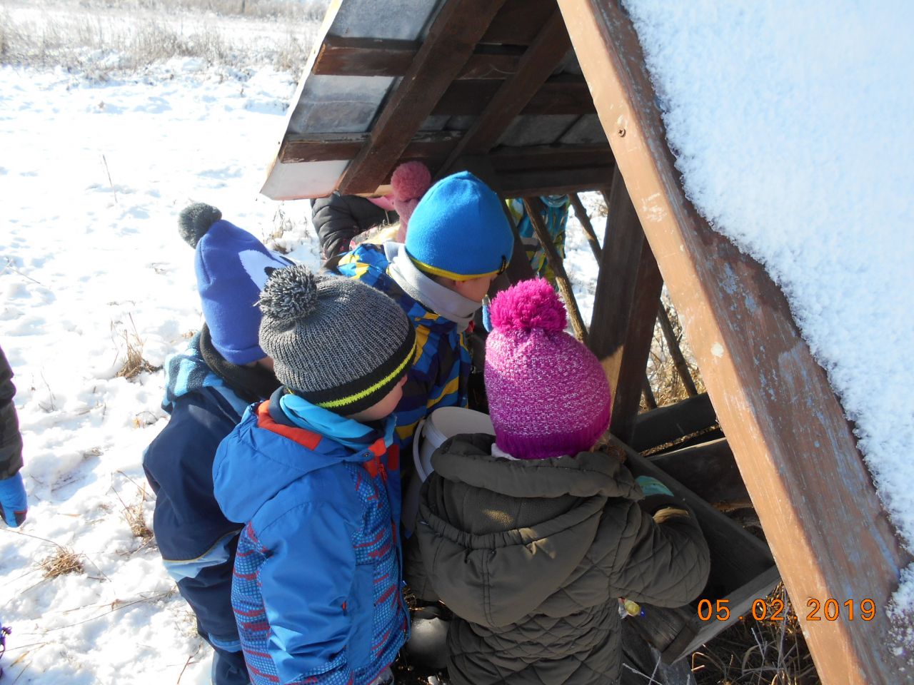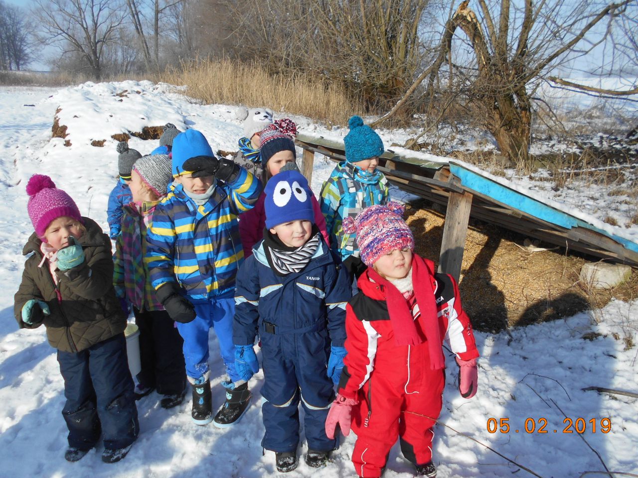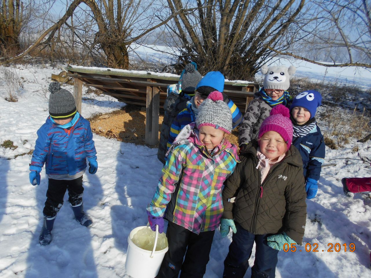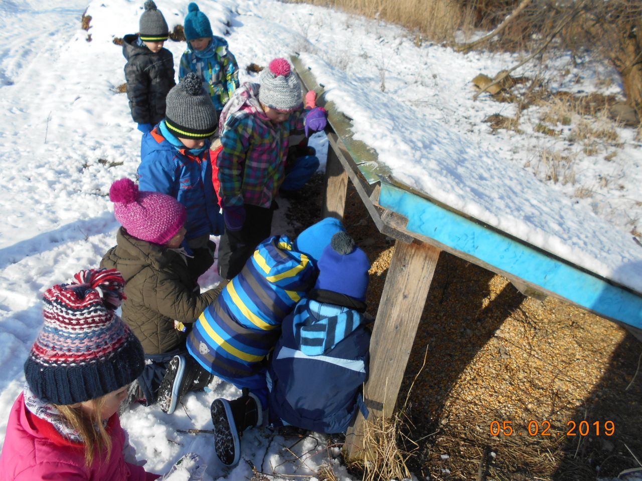 I ti naši nejmenší v mateřské škole se dokáží v zimě postarat o ptáčky a další zvířátka. Při našich vycházkách do přírody jsme v zimním období přikrmovali.Ve školce jsme si vyrobili krmítka, děti přinesly z domu ptačí zob, slunečnici a mohli jsme roznést krmítka s potravou. Ale mysleli jsme také na zvěř, kterou často pozorujeme a vyhledáváme její stopy ve sněhu. Tak jsme si připravili z podzimu nasbírané kaštany, žaludy a kukuřici a hurá ke krmelci .Povídali jsme si o zvířátkách, která ke krmelci chodí a dohodli jsme se, že při další vycházce půjdeme opět dohlédnout jestli mají dostatek potravy.
