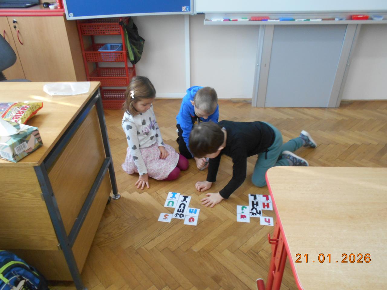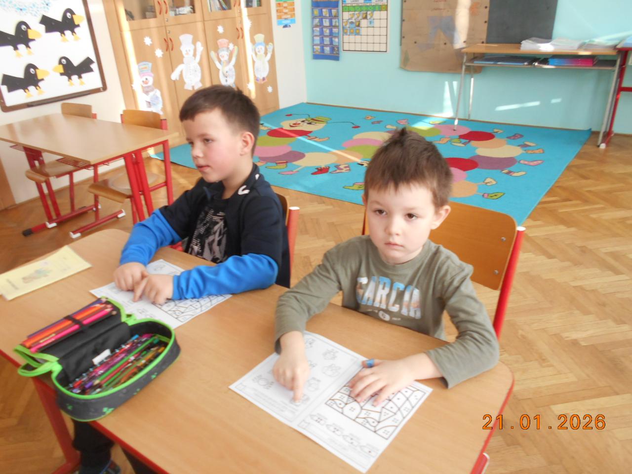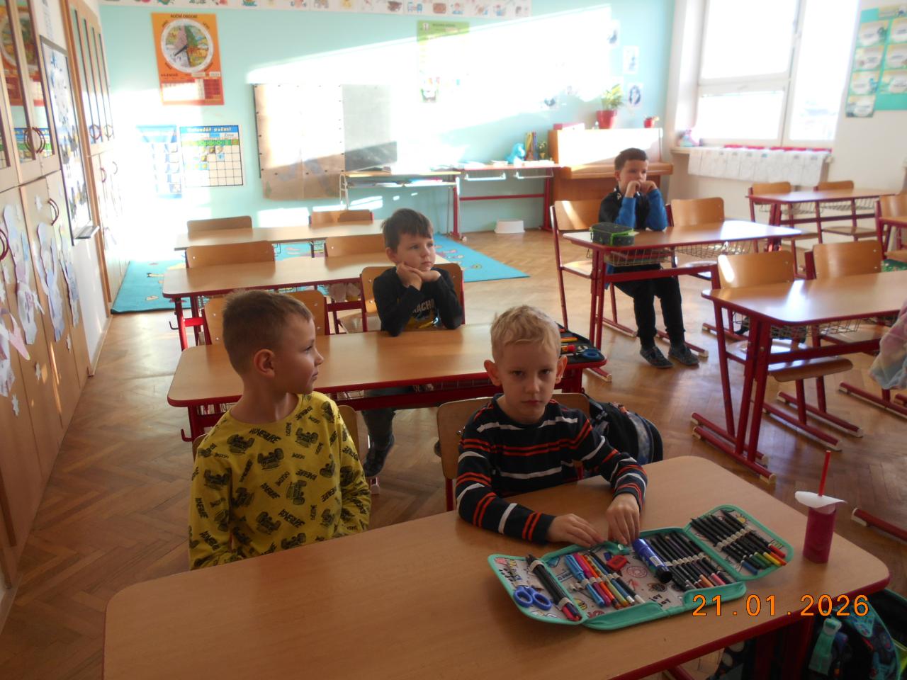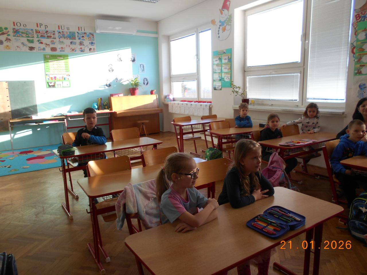 Ve středu 21.ledna jsme s předškolními dětmi navštívili naše kamarády v první třídě. Děti se seznámily s paní učitelkou, prohlédly si třídu, vyzkoušely sezení v lavicích a společně s prvňáčky se zapojily do plnění úkolů. Barvičky, písmenka, troška počítání, ve skupinkách i samostatně. Děti si vyzkoušely, jak zajímavé učení může být. Všichni plnili úkoly s velkým nadšením a měli ze setkání viditelnou radost.