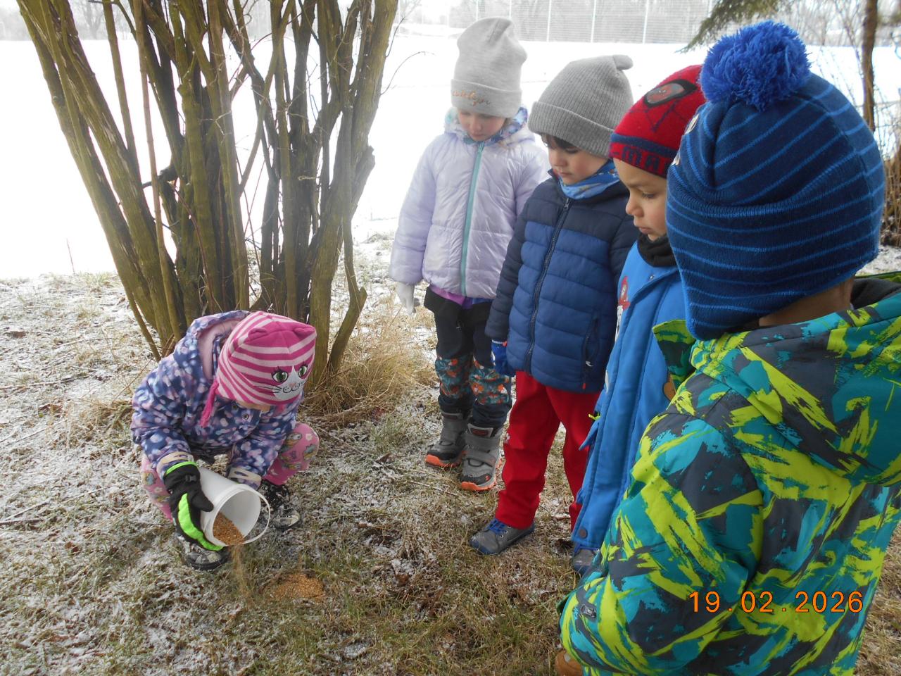 Letošní zima je pro naše opeřené sousedy náročným obdobím. Společně s dětmi se proto v naší školce učíme, jak jim správně pomoci, aby měli dostatek energie i v mrazivých dnech.