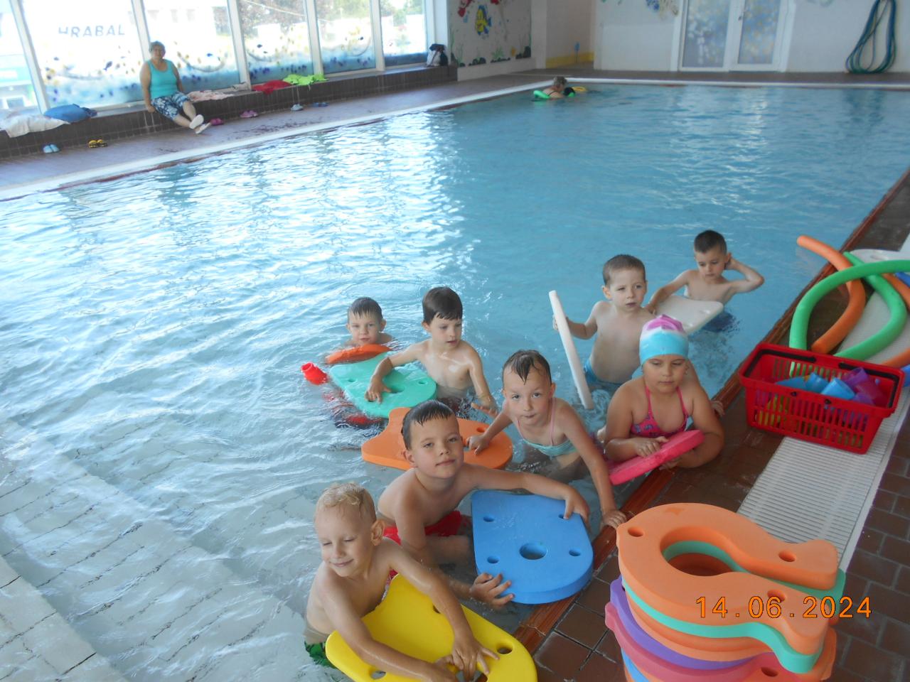 V letošním školním roce měly nejstarší děti z mateřské školy možnost v měsíci dubnu až červnu účastnit se předplaveckého výcviku na plaveckém bazéně v Kroměříži. Děti se zde hravou formou seznámily se základy plávání, a to: učily se foukat do vody, splývat na vodě pomocí pěnových destiček, přesunovat se z jedné strany bazénu na druhou a další různé metody výuky, které využijí při pobytu ve vodě. Tato nadstandardní aktivita děti velmi bavila a každý pátek v týdnu se na ni velmi těšily.