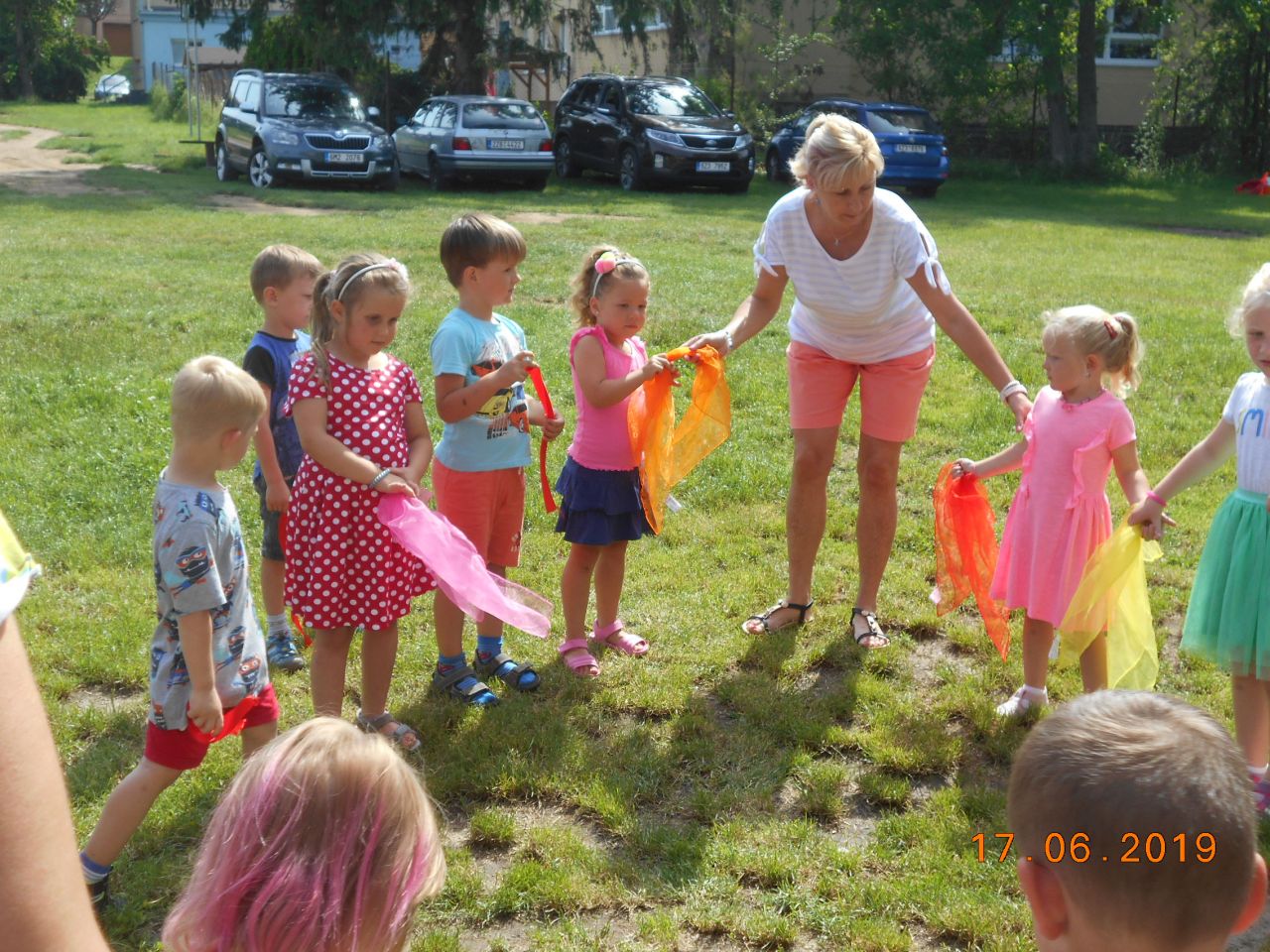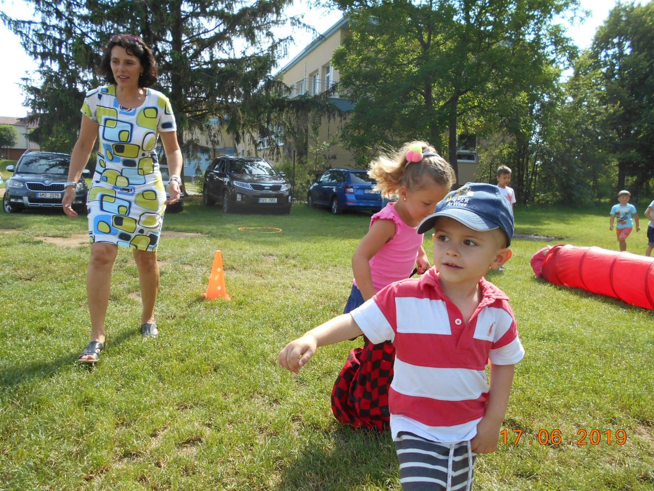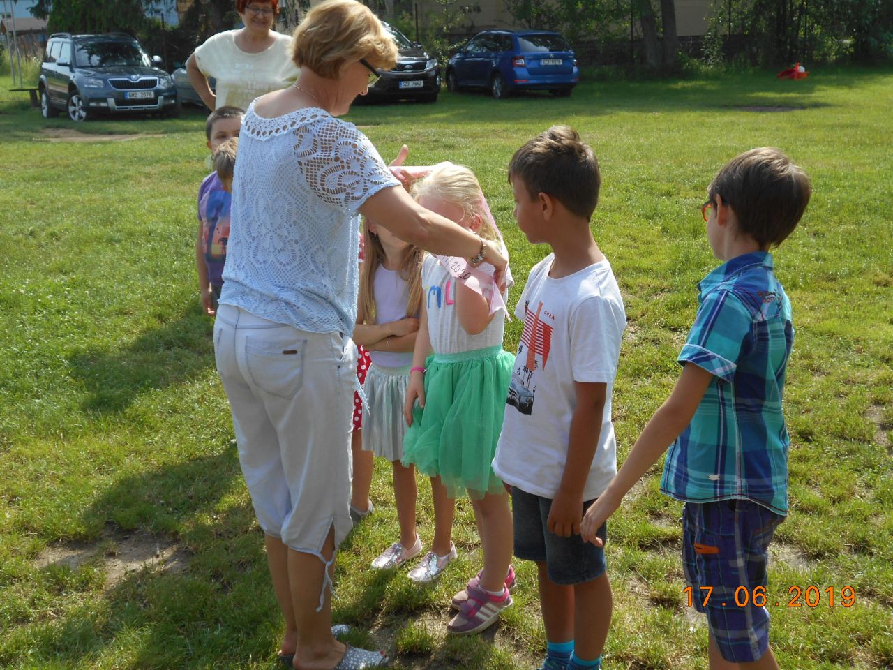 V pondělí 17 .června 2019 proběhlo slavnostní rozloučení všech dětí z mateřské školy s předškoláky. Nejprve nám některé děti předvedly své pásmo, aby ukázaly, všechno se naučily v kroužku angličtiny. Musíme je moc pochválit, protože se jim velmi povedlo. Poté všechny děti ze školky zatancovaly, zazpívaly a přednesly básničky na téma barvy. Naši už budoucí skoro školáci byli slavnostně ošerpováni . Děti dostaly drobný dárek na památku a za zvuku zvonečku si řekly své přání. Na řadu přišla volná zábava, při které děti prolézaly tunel, házely na cíl, skákaly v pytli a tancovaly za doprovodu živé hudby. Velký úspěch mělo malování na obličej. Děti si nechaly namalovat, co se jim líbí. Velkým překvapením pro všechny byla ukázka hasičů. I ty nejmenší děti nám všem předvedly, jak jsou šikovné a obratné. Na závěr příjemného odpoledne proběhlo opékání špekáčků. Chceme touto cestou poděkovat rodičům za organizaci odpoledne, za občerstvení a celkovou spolupráci.