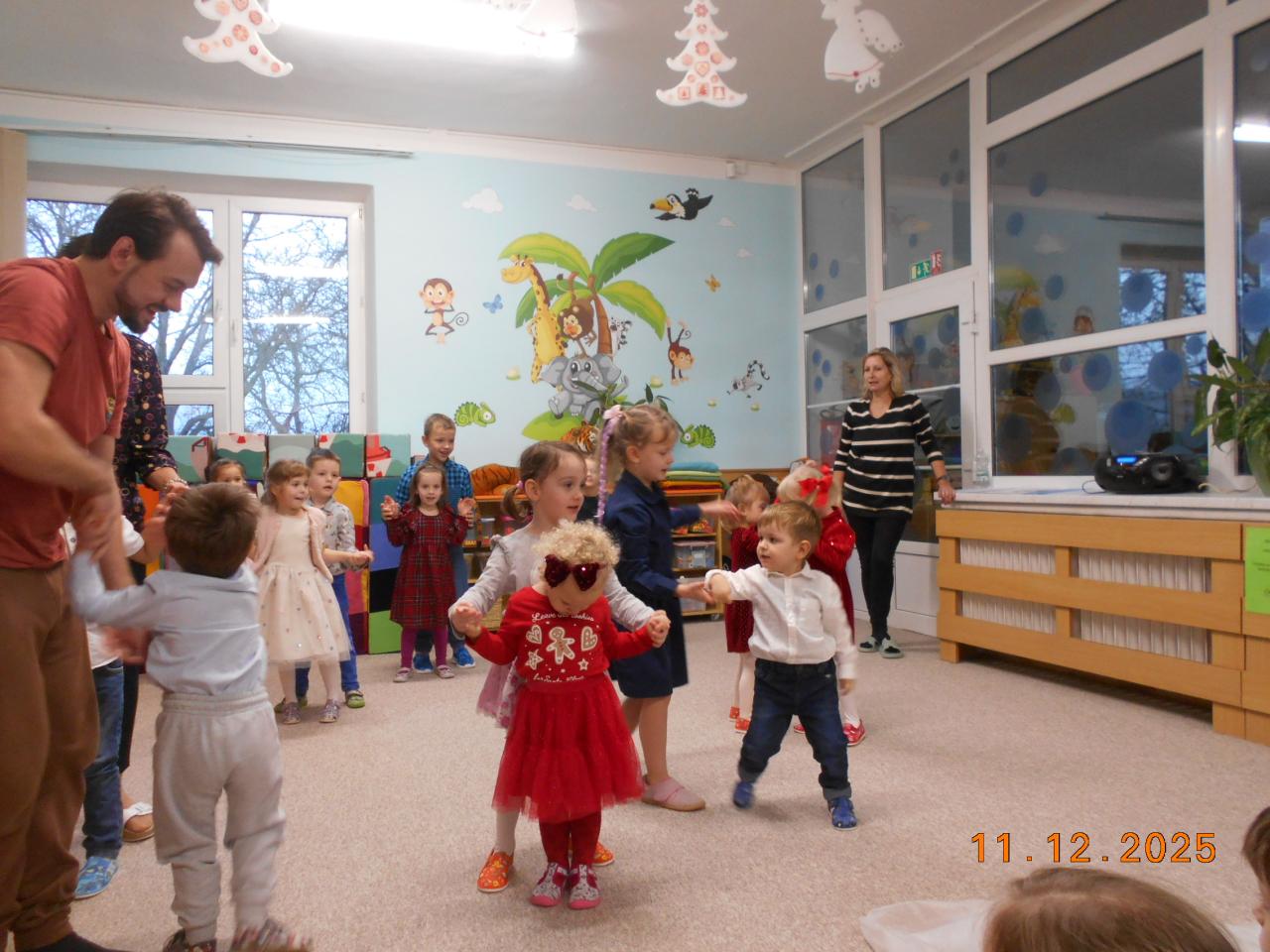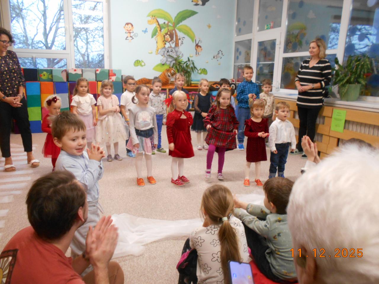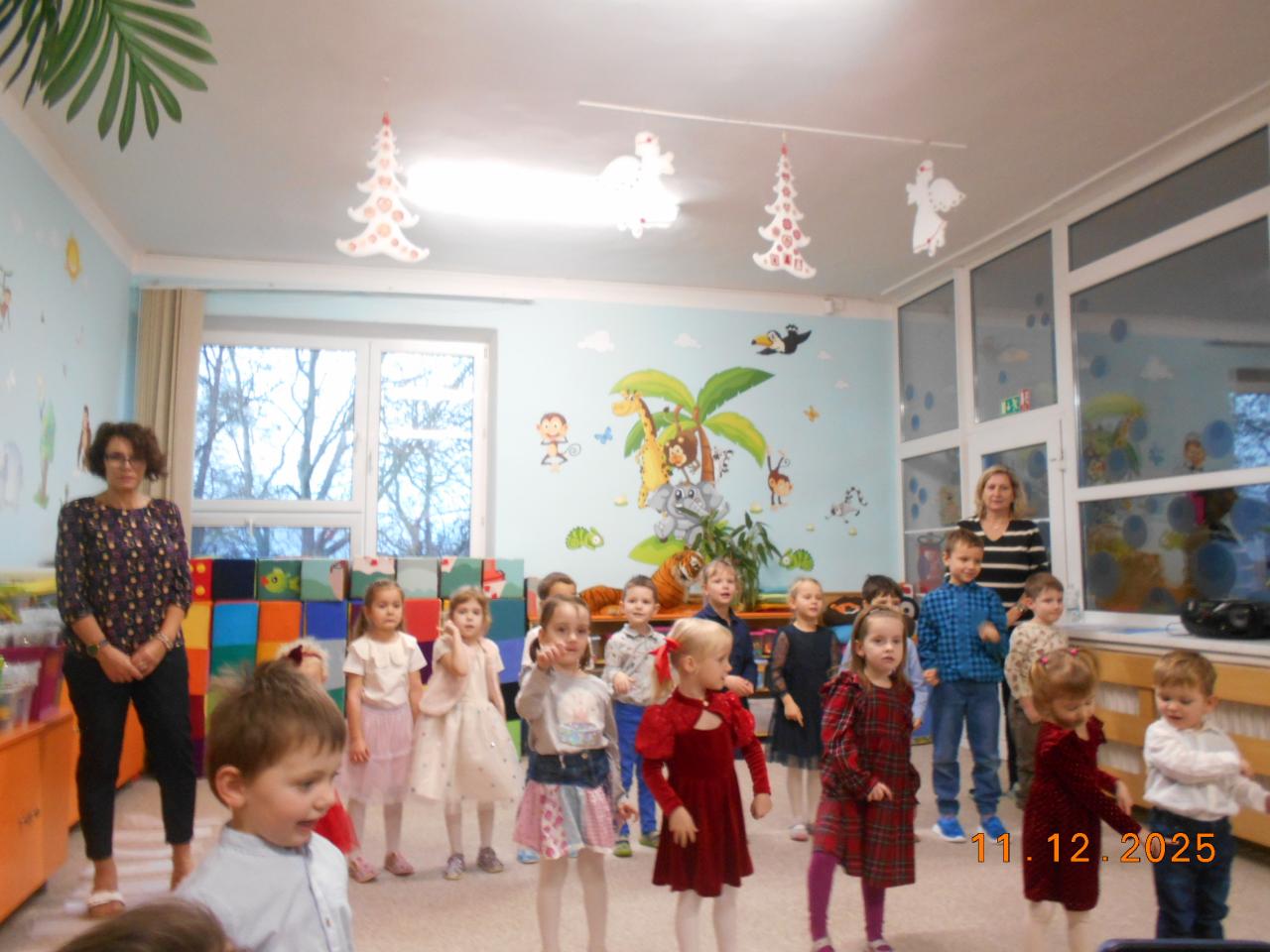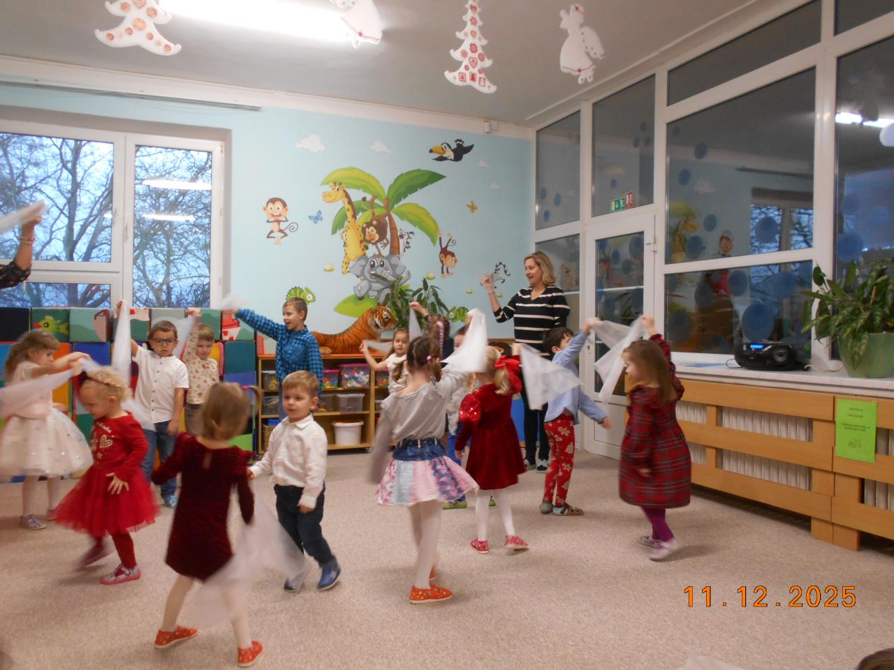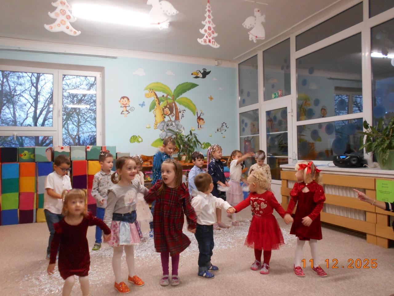 Ve čtvrtek 11.12.2025 proběhlo v naší školce vánoční setkání s rodiči. Děti ukázaly nejen maminkám a tatínkům, ale i svým dalším příbuzným, co se od září naučily. Básničky, písničky, tanečky i vánoční písničku se sněhovou nadílkou.