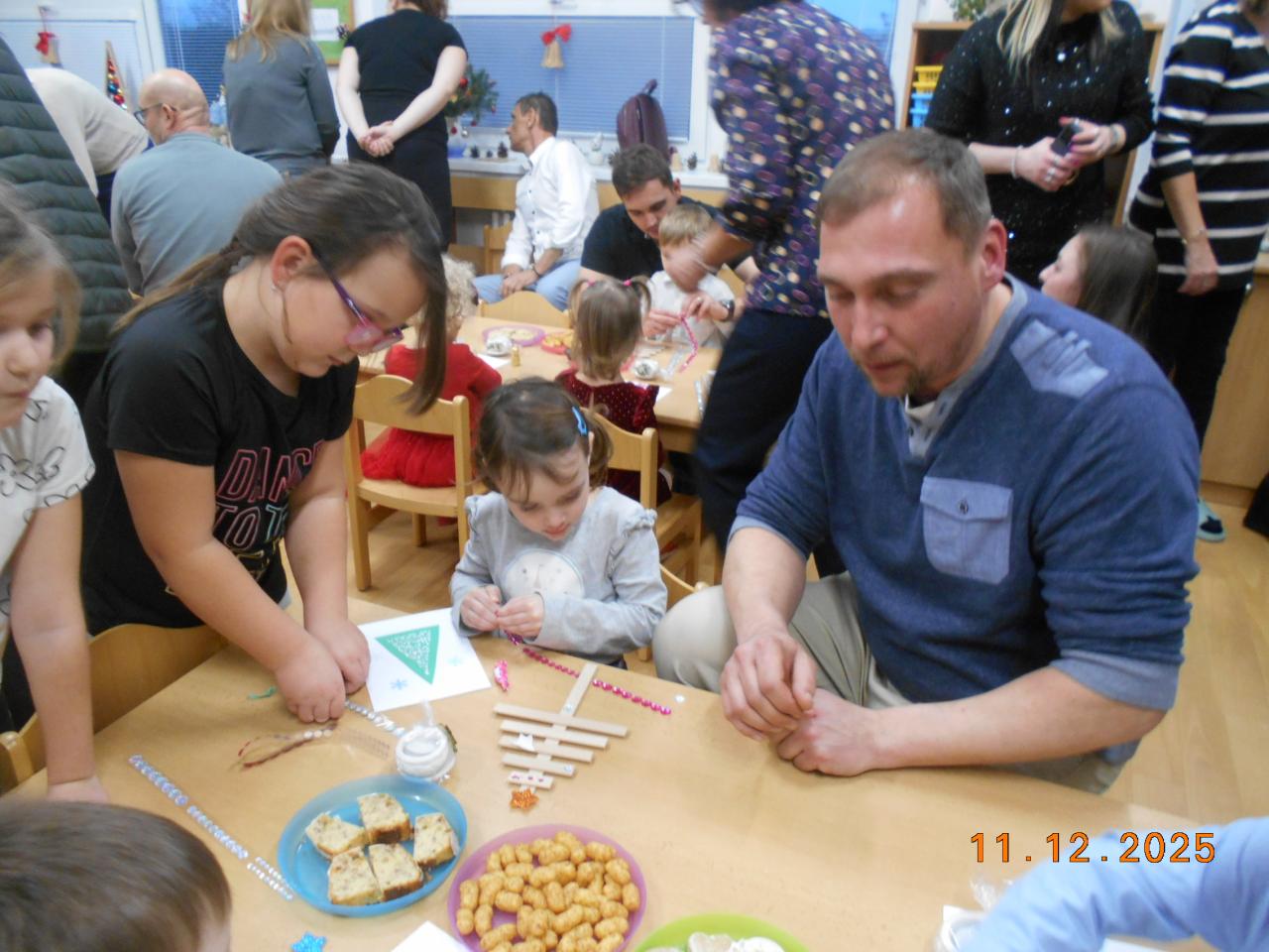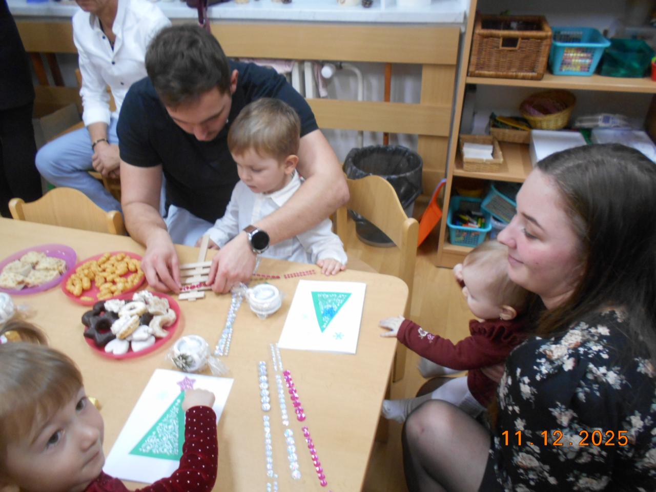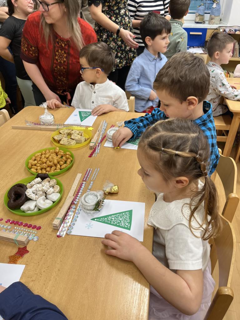 Součástí setkání bylo tvoření malého vánočního stromečku, což všechny bavilo a vznikly originální výrobky, které teď zdobí domovy dětí. Také si každý domů odnesl vánoční přáníčko s malým dárkem. Slavnostní předvánoční atmosféru dotvořila vůně punče, perníčků a cukroví, které všichni s chutí ochutnali. Celé odpoledne bylo v radostné atmosféře.