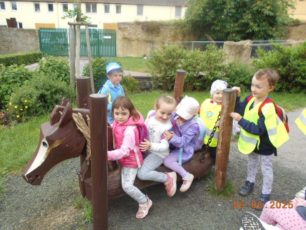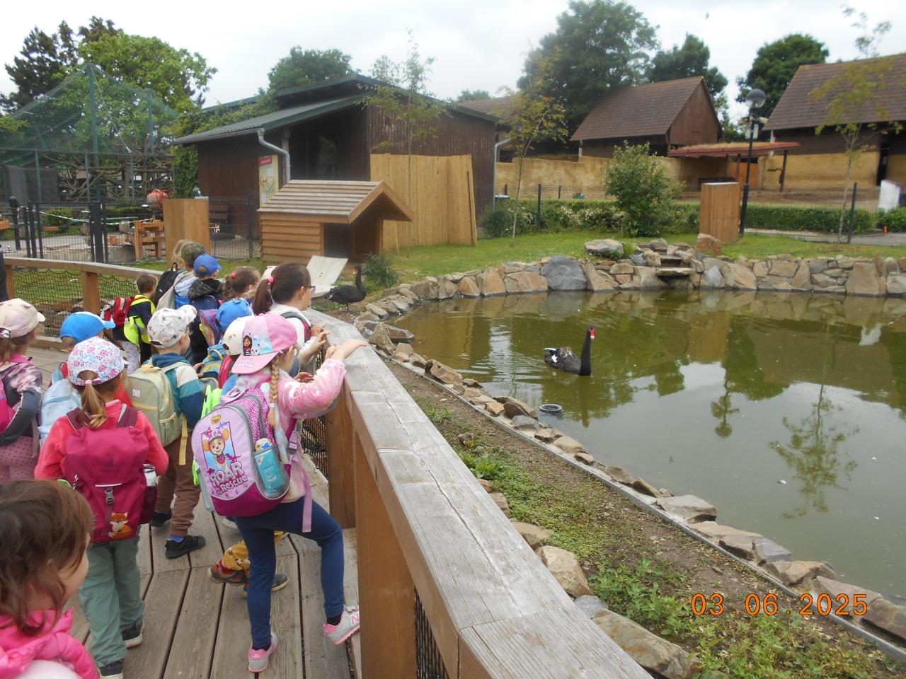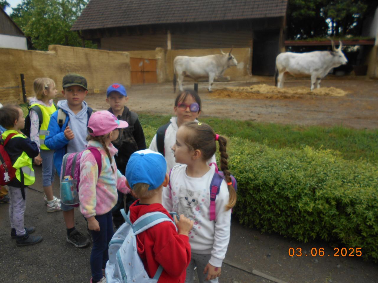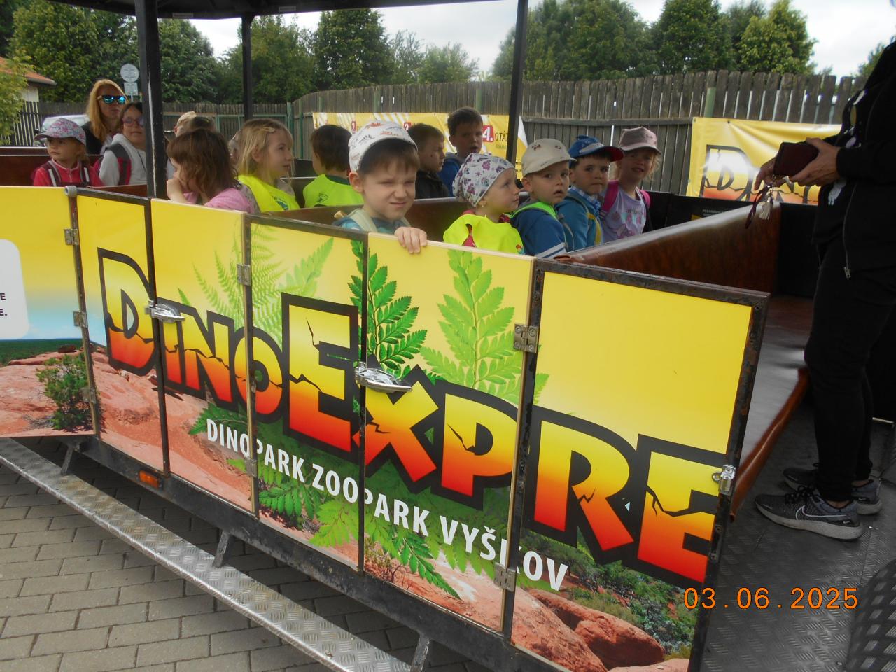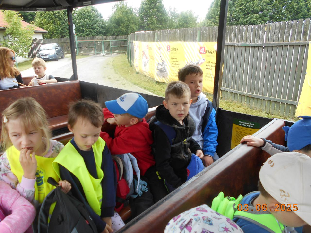 V úterý 3.6.2025 se děti z naší mateřské školy vydaly za poznáním do Vyškova. Navštívily ZOO Park, kde si prohlédly expozici domestikovaných zvířat, chov včel i zkusily zapumpovat vodní pumpou na babiččině statku. Po svačince jsme přejeli vláčkem do světa dinosaurů. Všechny exponáty děti velmi zaujaly. Ve 4D kině děti zhlédly poutavý příběh malého dinosaura a jeho rodiny. Nesměl chybět nákup upomínkových předmětů a dobrot.