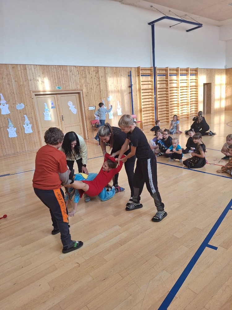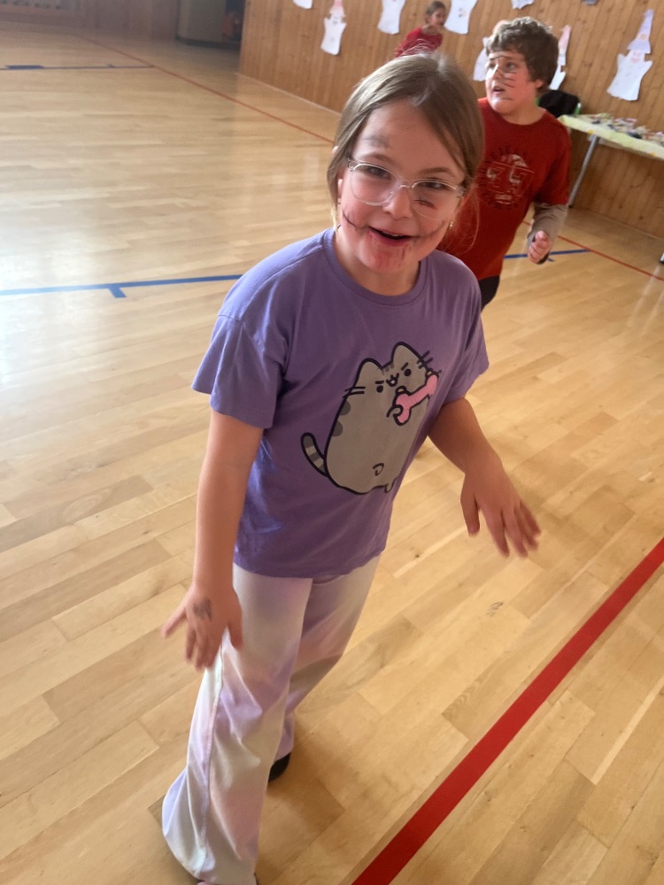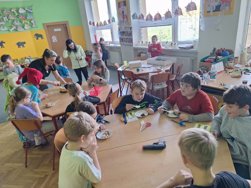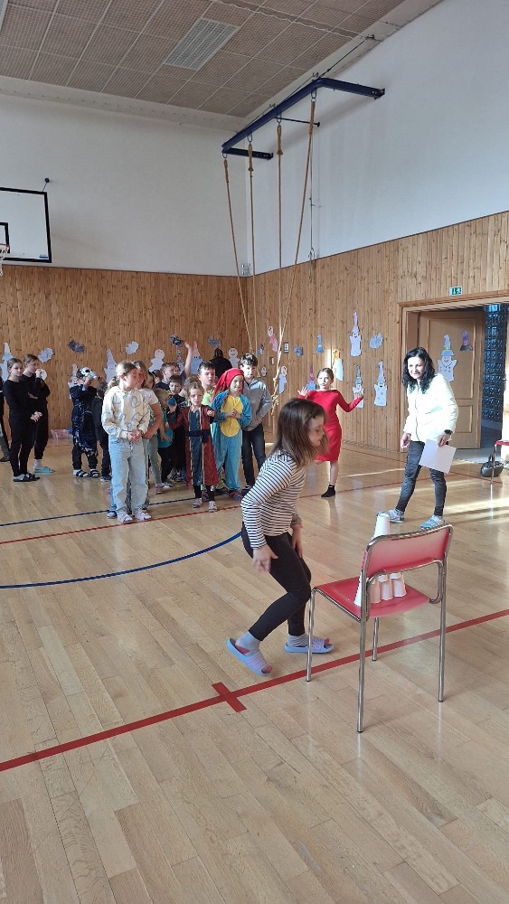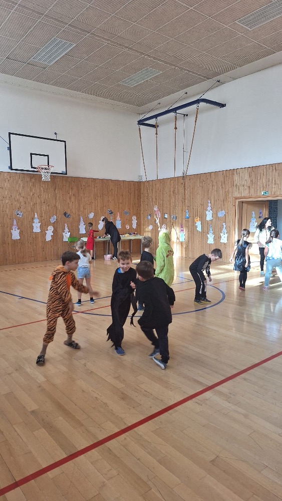 Máme konec října, nastal dušičkový čas a my ve školní družině opět slavíme „Halloween“ -v překladu „Předvečer všech svatých“. Abychom se chránili před zlými duchy, oblékli jsme se do strašidelných kostýmů a společně jsme se přesunuli do tělocvičny, kde se celá akce odehrála. Začali jsme jako zombíci, kteří tančí při strašidelné hudbě plné tajuplných a strašidelných zvuků. Následovala písnička o čarodějnicích, kterou dobře známe a pořádně jsme si zařádili. Odstartovali jsme s vysokým nasazením a stejně jsme i pokračovali. Rozdělili jsme se do dvou družstev a soutěžili jsme v halloweenském duchu dál, luštili jsme křížovky a hlavolamy, hledali jsme rozdíly, bloudili jsme v bludištích, kde hlavní úlohu hrály čarodějnice, pavouci, kostlivci, kouzelné lektvary nebo černé kočky. V přestávkách mezi disciplínami jsme si pochutnávali na brambůrkách a jiných dobrotách, které pro nás připravili maminky, za co jim velmi děkujeme. Nechybělo ani tancování na oblíbené písničky a tohle rozpohybované řádění v rytmu jsme si opravdu užili. Snad si to užila i naše milá kamarádka Lia, která se rozhodla oslavit své narozeniny společně s námi na halloweenské párty. Na závěr jsme oslavenkyni popřáli všechno nejlepší, dostala hobla a malý dáreček na památku od nás. Dort s čokoládovými pavoučky upečený maminkou byl lahodnou tečkou za zábavným odpolednem