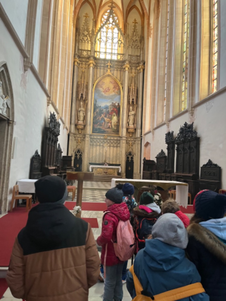 Než kniha spatří světlo světa, trvá to docela dlouho, a při jejím vzniku musí spolupracovat spousta profesí. O tom jsme se přesvědčili na poutavé přednášce v Knihovně Kroměřížska ve středu 22. ledna. Poznali jsme, co vykonává například sazeč, grafik, producent nebo vazač. A protože jsme měli v Kroměříži ještě nějaký volný čas, zúročili jsme ho návštěvou kostela Svatého Mořice, kde jsme si připomněli základní znaky gotiky.