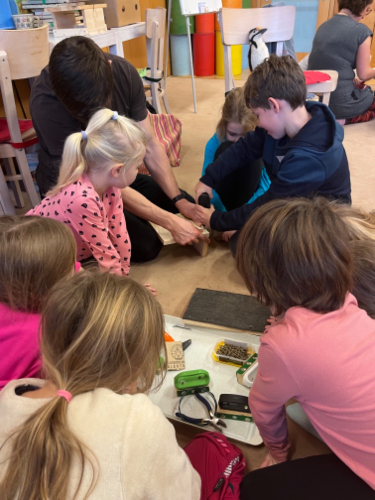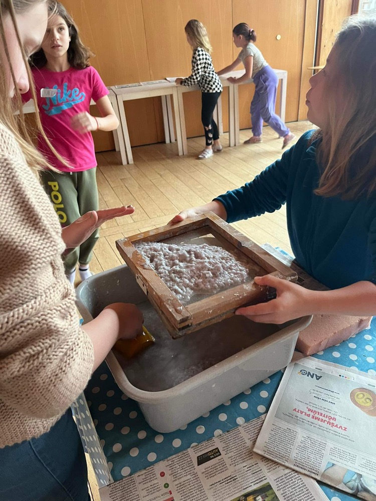 4. ledna 2024 měli žáci možnost realizovat vzdělávací programy ve Sluňákově (centrum ekologických aktivit města Olomouce). Návštěvu tohoto centra jsme dlouho odkládali vzhledem k finační náročnosti (program + bus), nyní jsme ji mohli žákům dopřát díky dotačnímu programu OP JAK zcela zdarma. Vybrali jsme dva programy. Pro 1 a 2. roč. "Nářadí se nebojíme, krmítko si postavíme" a pro žáky 3. - 5. roč. program "Jak vzniká papír". Programy byly perfektně připraveny a žáky zaujaly, což je z fotografií patrné. Do školy jsme si přivezli 2 vlastnoručně vyrobená krmítka, z nichž jedno darujeme mateřské škole a starší žáci bedlivě sledují vysychání svých vyrobených listů papíru. Plánujeme je využít na přáníčko, ale protože to bude dáreček, víc prozradit nemůžeme :-)