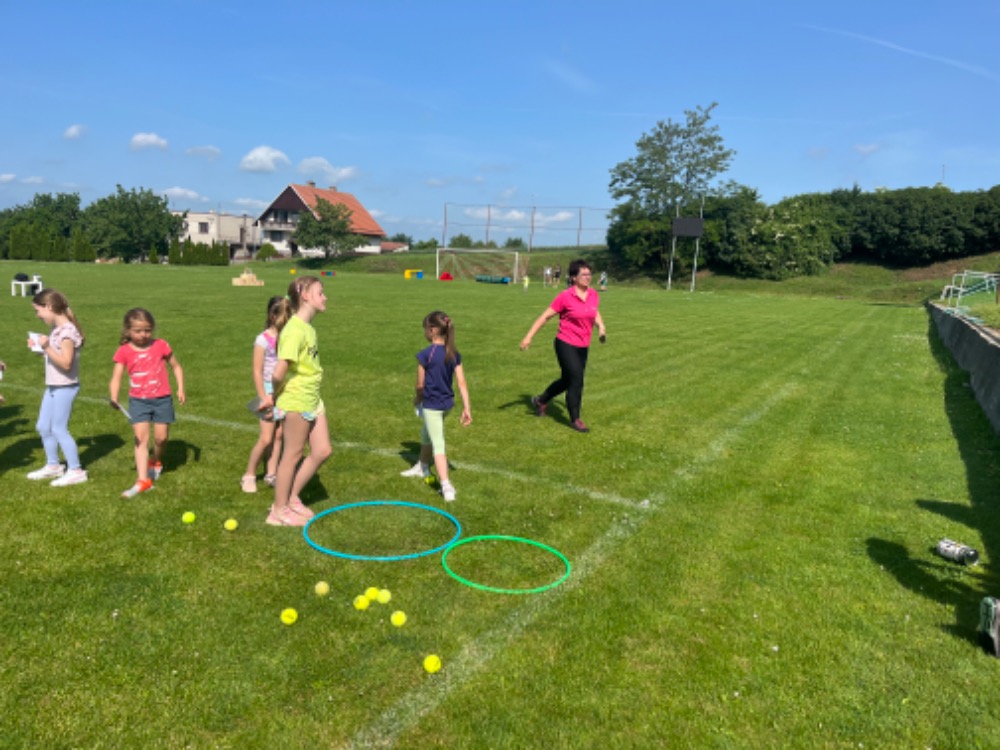 4.6.2025 proběhl sportovní den mezi malotřídními školami Bezměrov a Počenice. Olympiáda měla 5 disciplín - běh 400 nebo 800 m (dle věku žáků), skok z místa, hod na cíl, překážkový běh a skok přes švihadlo na daný čas. Samozřejmě hlavním cílem bylo zasportovat a zasoutěžit si, ale výborné výsedky našich žáků byl příjemný bonus pro všechny. Soutěžilo se ve třech věkových kategoriích - kluci a holky a dovezli jsme 10 medailí. Na 18.června jsme pozvali žáky z Počenic, abychom "změřili" znalosti tentokrát přírodovědné, spojené výtvarným tvořením. Tak jen doufejme, že i sluníčko se bude krásně "usmívat" jako právě v Počenicích.