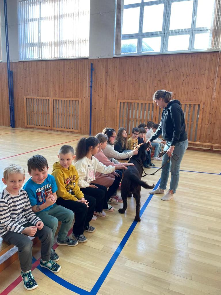Příjemnou zkušeností pro žáky naší školy bylo pondělní setkání s fenkou Mimi a její průvodkyní.