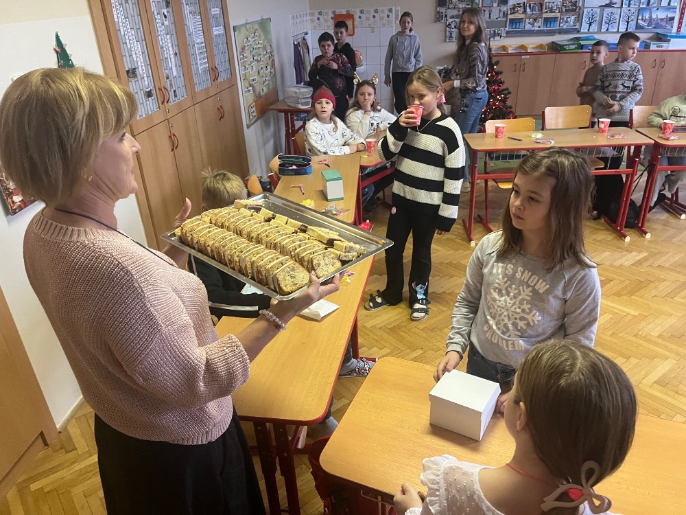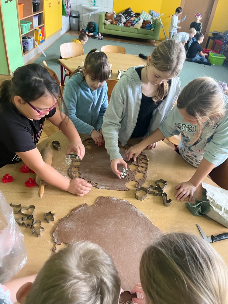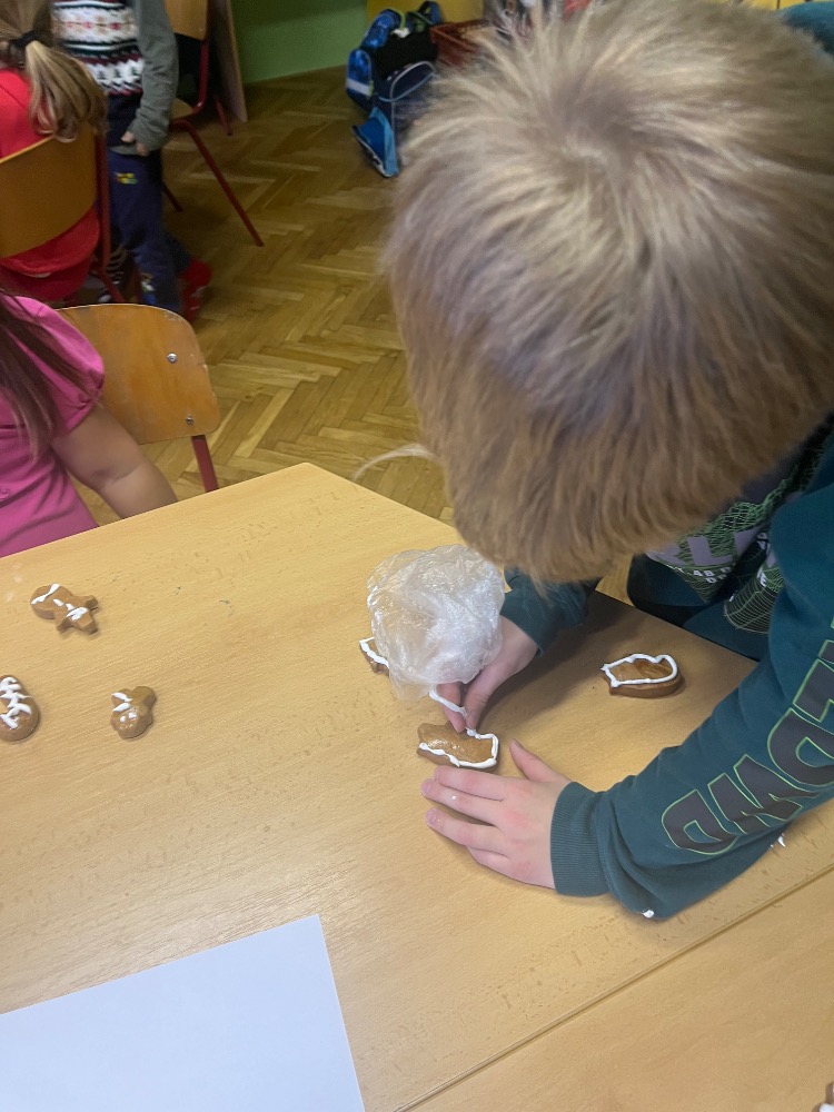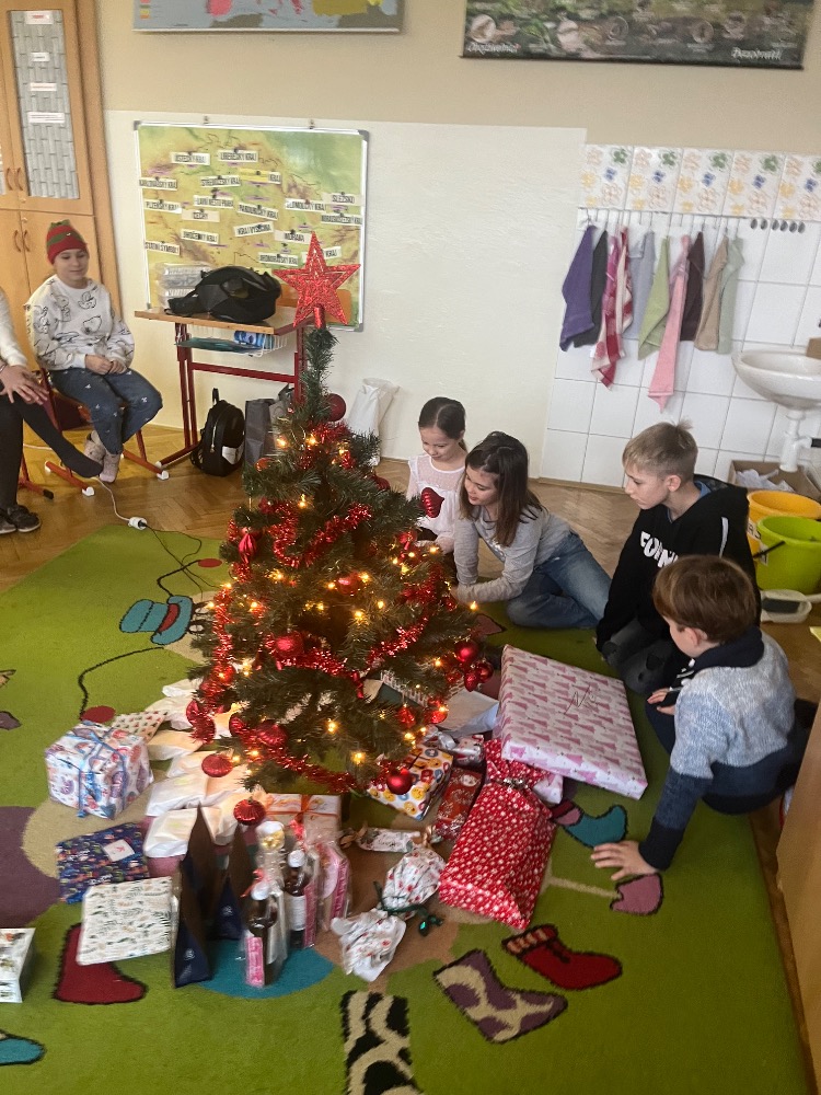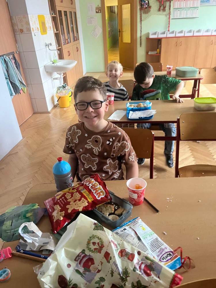 Nejpoetičtější období roku vždy velmi prožíváme i ve škole. Již první adventní pondělí si povídáme o Vánocích i zvycích s nimi spojemými a pak si je průběžně připomínáme. Ve čtvrtek nám přišla o křesťanských Vánocích povyprávět paní Blešová a dnešním dnem program vyvrcholil. Žáčči nám sdělili svá vánoční přání, abychom si mohli v lednu říct, zda se sny vyplnily, pak jsme si vánočně smlsli (punč i chlebíček nám upekly paní kuchařky, kterým moc děkujeme) a následovalo toužebně očekávané rozdávání dárečků a výborný štědrovečerní oběd.