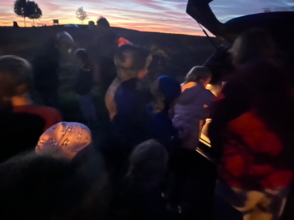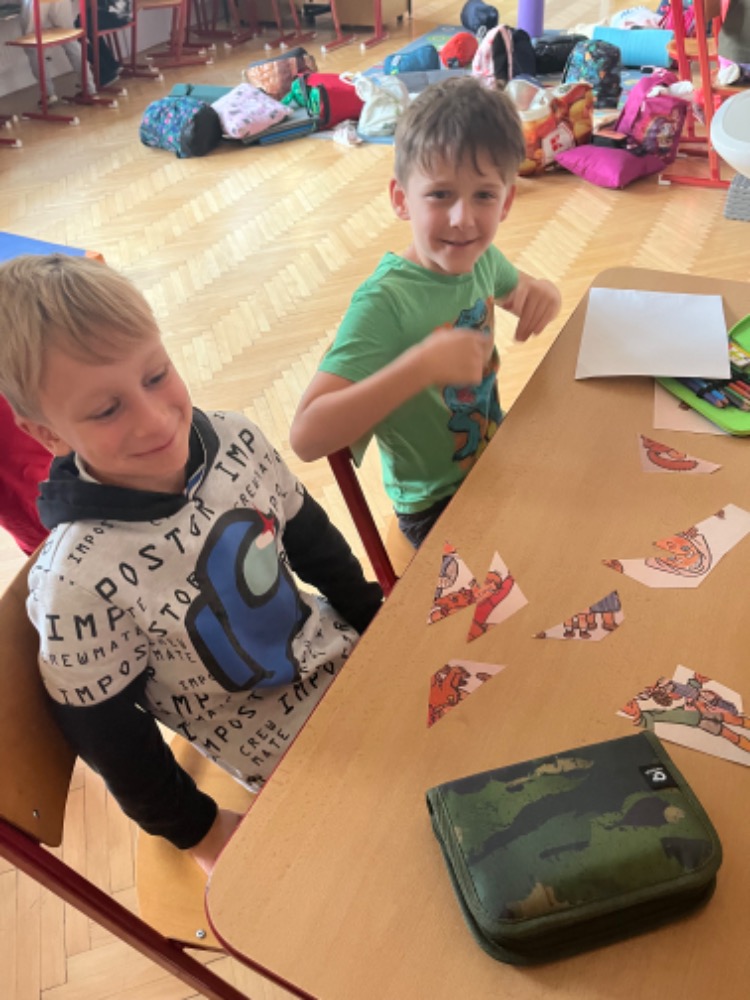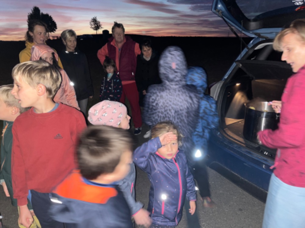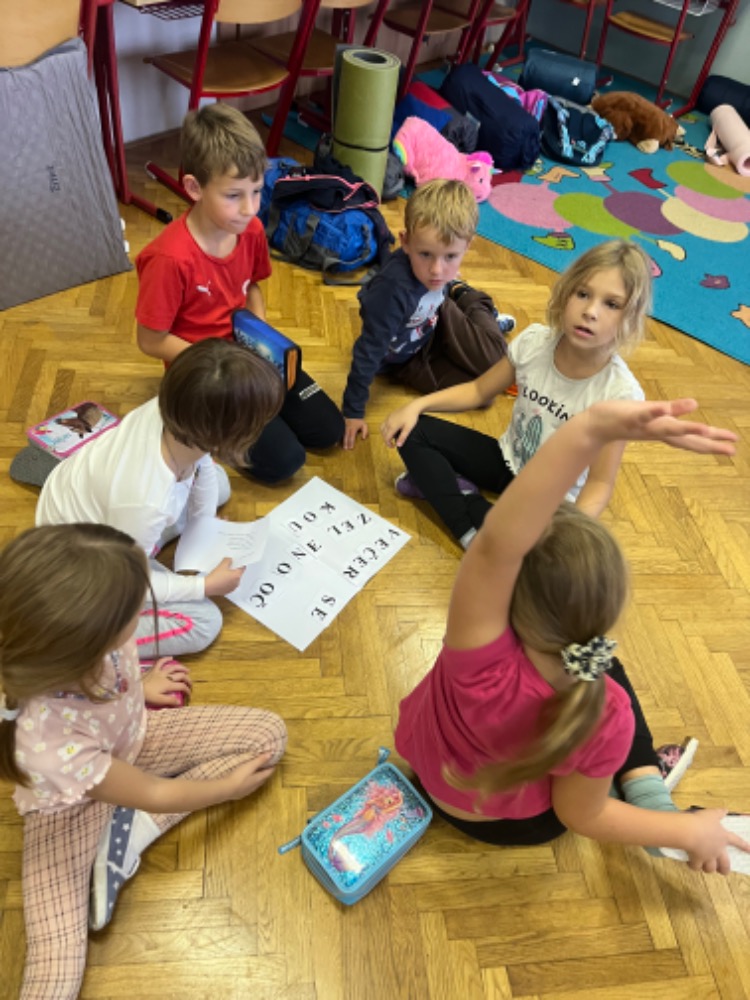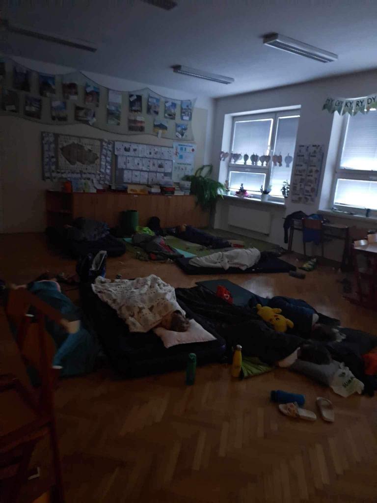 Jedna z nejoblíbenějších akcí žáků právě proběhla - spaní ve škole! :-) Tématem dnešního podvečerního vzdělávání bylo 100 let od narození ilustrátorky Heleny Zmatlíkové. Po ukázce prvního obrázku už byli všichni "doma" a sami vykřikovali ilustrace knih jako Honzíkova cesta, O letadélku Káněti, Bylo nás pět,... samozřejmě nechybělo promítnutí jednoho večerníčku z řady Domeček u tří koťátek,... Poté se žáci stali ilustrátory, skládali ve skupinkách obrázkové puzzle, sestavovali rozstříhaný příběh... nakonec své práce prezentovali ostatním. Ve škole dobré, ale vyrazit na vycházku ještě lepší... :-) Tady překvapili žáci pedagogy, protože hrnec vařených brambor o objemu 10l, který je každoročně čeká v polovině cesty, dokázali vyprázdnit! Opravdu jsme do kuchyně vraceli hrnec se třemi bramborami :-). Bylo humorné poslouchat zejména ty nejmladší - "To je dobré, to jsem ještě nikdy nejedl!" A že noční procházka je oblíbená, dokládá i stále početnější doprovod bývalých spolužáků. Máme z toho radost. Po návratu bylo připraveno překvapení. Když jsme si hráli na ilustrátoři odpoledne, nyní jsme zkoušeli malovat jinak - světlem. Z aktivity byli všichni nadšení a věřím, že mnozí to budou zkoušet i s rodiči doma. Den rychle utekl, tak už "jen" nachystat spacák a hurá do pelíšků :-). Ráno jsme žáky ještě "nakrmili a napojili" zásluhou paní kuchařky (připravila chleby se sýrovou a rybičkovou pomazánkou, čaj, kakao a "pekelně dobré" mafiny) a pak očekávaná akce skončila. Tak zase za rok :-)...
