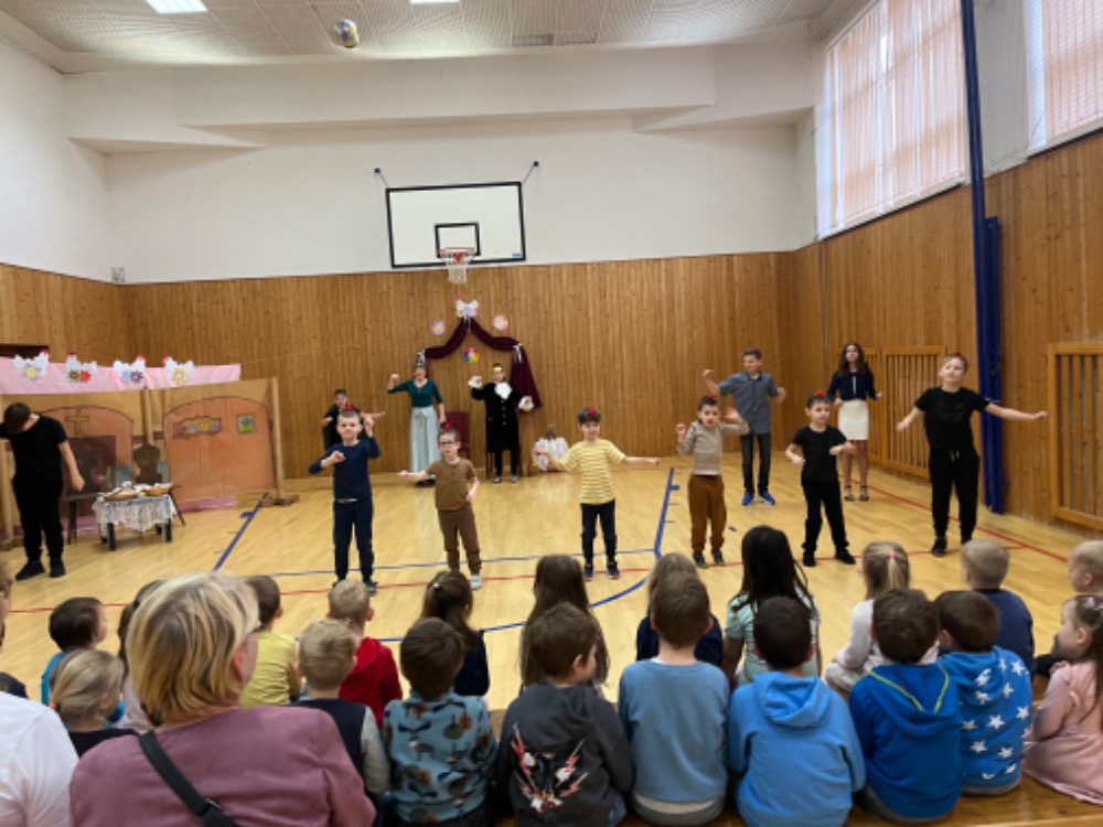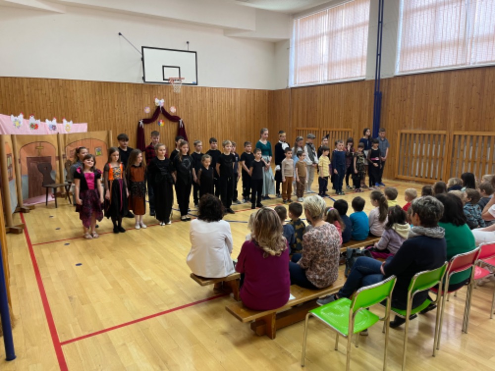 Školáci vystoupili s pohádkou " O zatoulaném kolečku". Šlo o velikonoční pohádku proloženou tanečky a písničkami. Dle pochval rodičů a hostů ji žáci zvládli skvěle. Velký dík patří také pedagogům za náročnou a pečlivou přípravu.