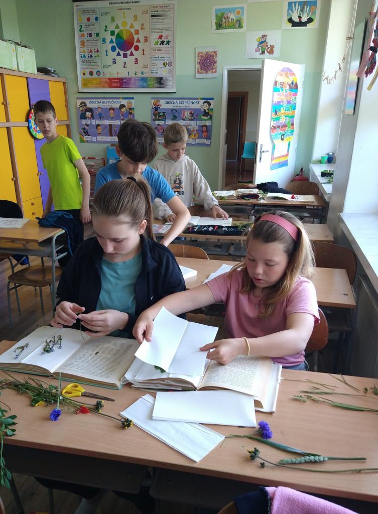 V uplynulém období jsme se s dětmi 3.-5. třídy věnovali učivu o louce. Jedna z výhod vesnické školy je možnost výuky mimo prostory školy. Vyšli jsme si do přírody a nasbírali luční byliny a trávy, které jsme se společně snažili poznat a správně pojmenovat. V hodinách výtvarné výchovy jsme je pak vylisovali a sestavili do jednoduchých herbářů. Pro mnohé to byla zajímavá zkušenost a bylo vidět, že je neobvyklá aktivita zaujala.